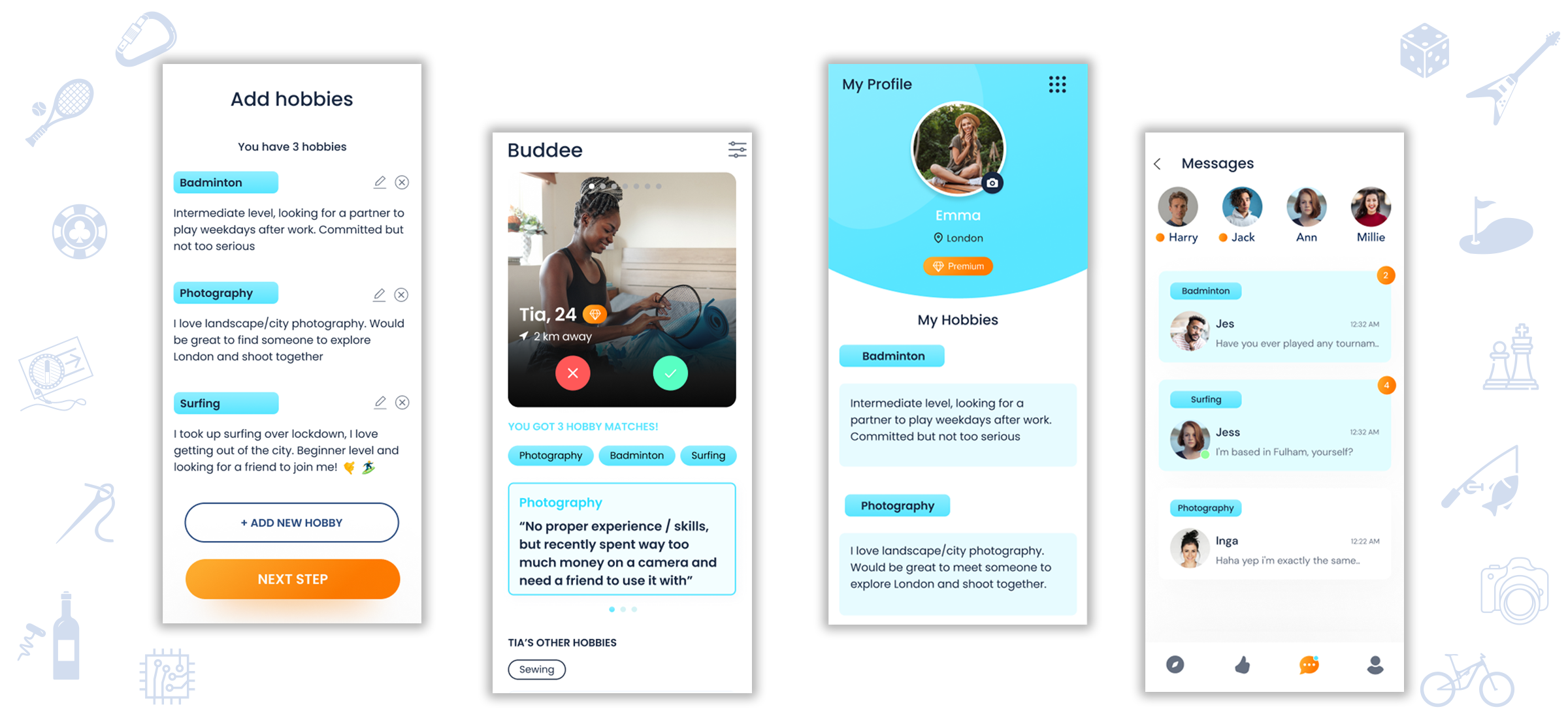 Our mission is to make people happier through shared hobbies & meaningful friendships. Buddee is an app that lets you swipe, match and chat with users based on location and shared hobbies.